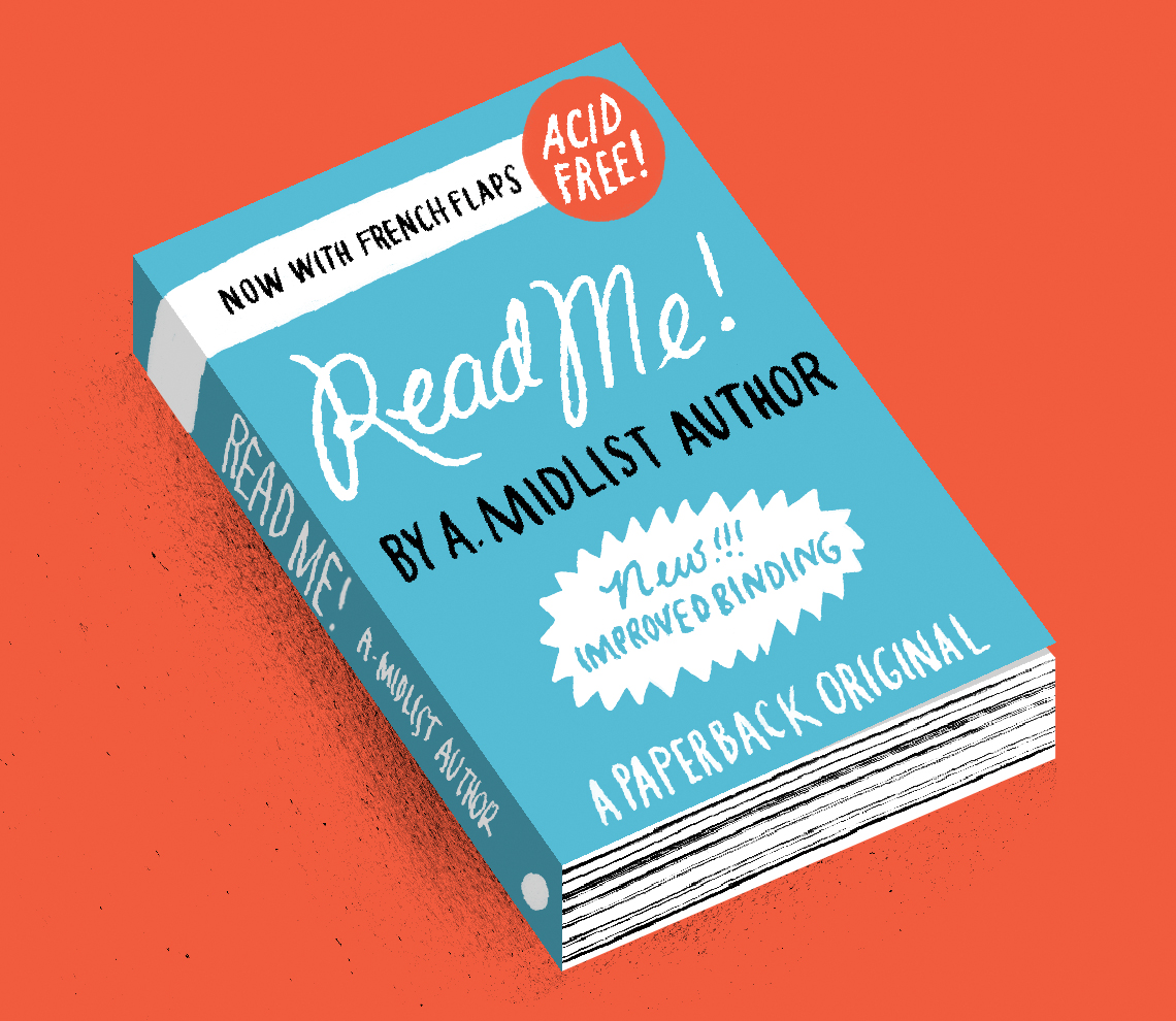 Spot illustration for an essay in the book review about an author describing her struggle to publish straight to paperback and abandon hardcover. You can read it