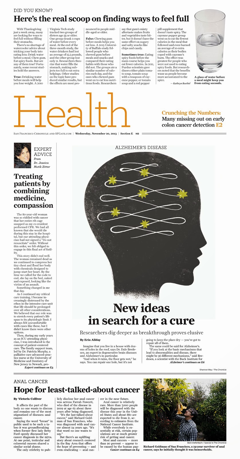 Illustration for the Health section of the SF Chronicle about new approaches in Alzheimer's research. You can read about it
