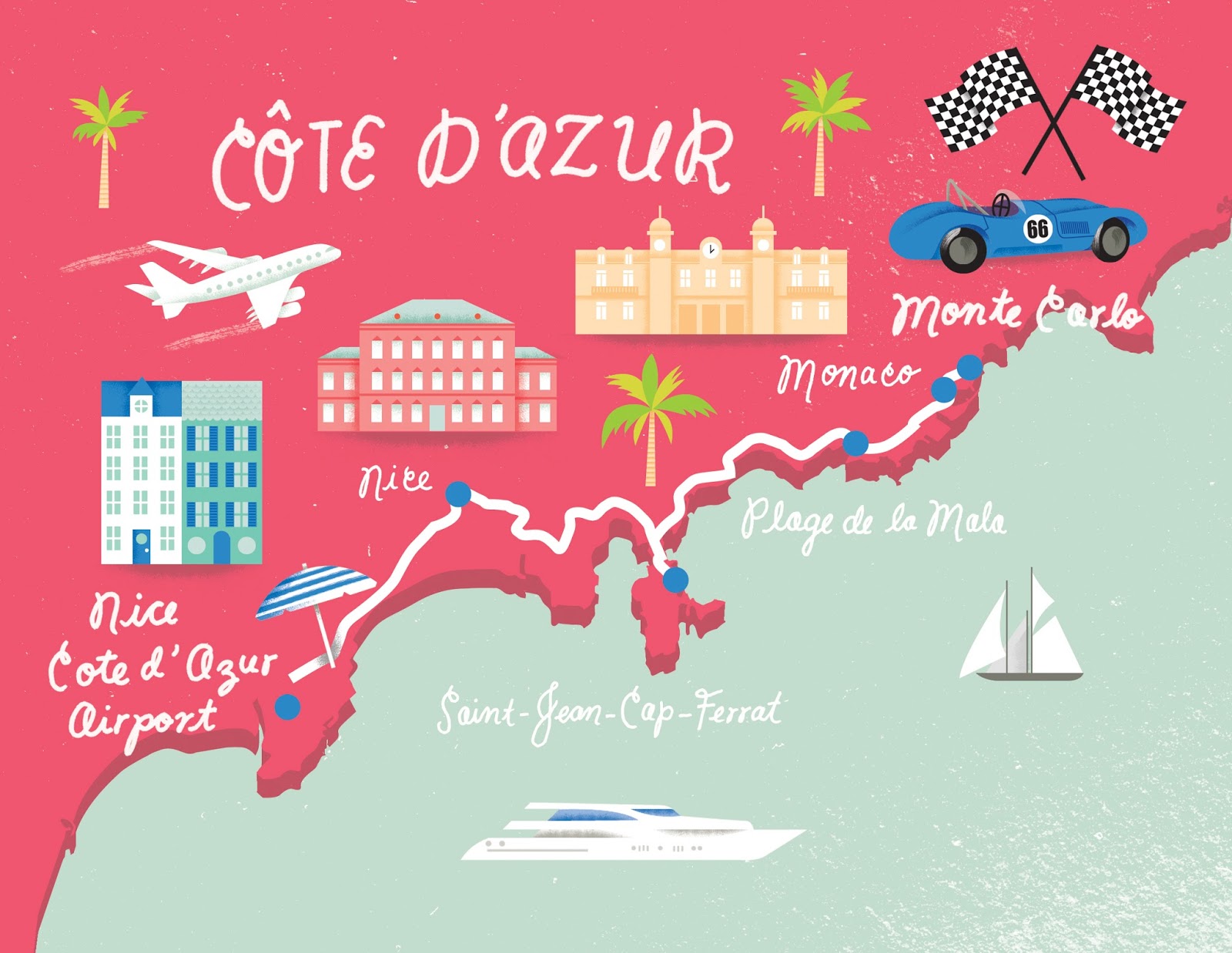 Here's a map I did recently for b.there magazine, the magazine of Brussels Airlines. It looks like it would be a lovely road trip!