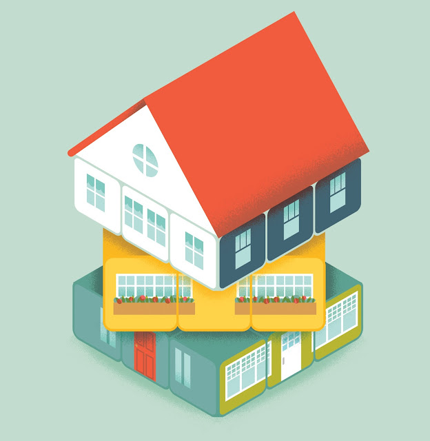 Illustration about the benefits of in-law apartments for the San Francisco Chronicle.