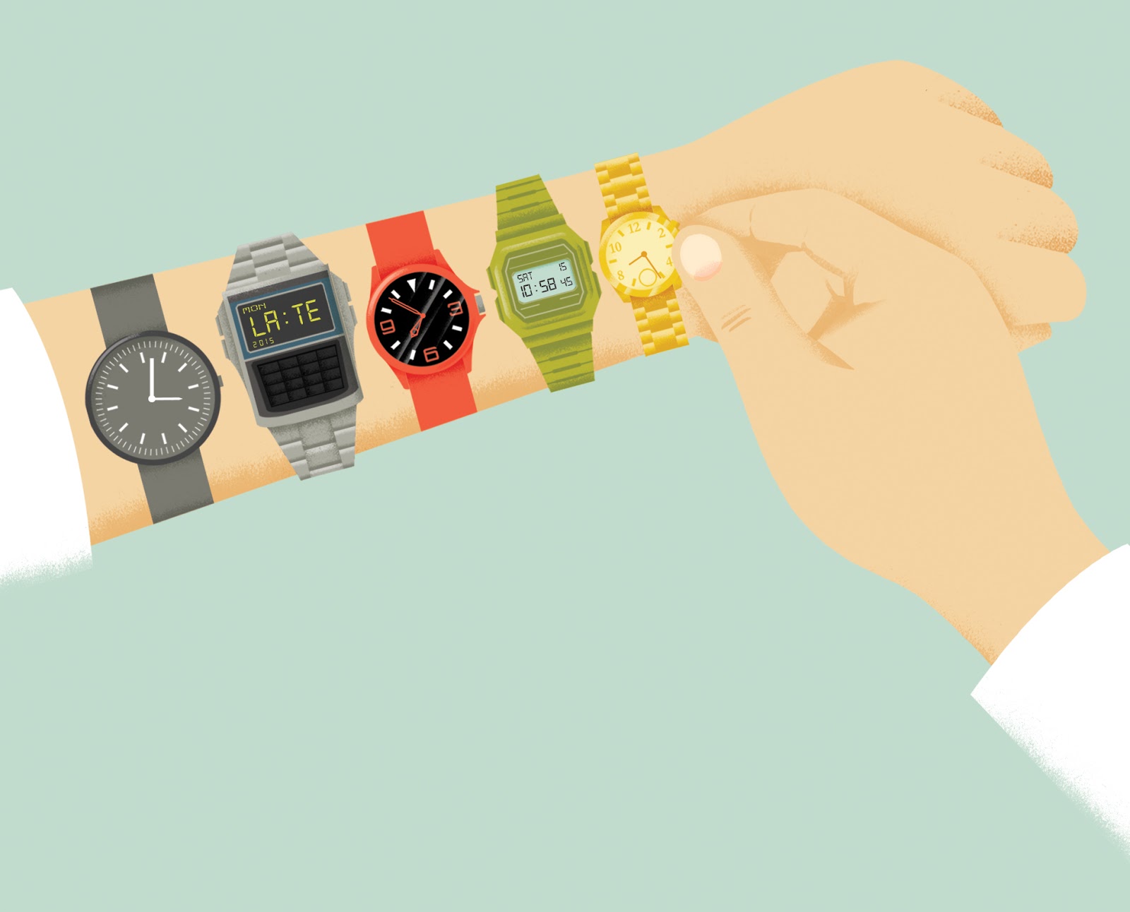 For Southwest Magazine May 2015 issue, about people who are chronically tardy.