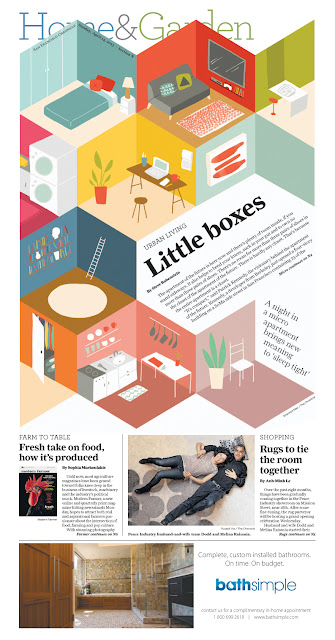 Illustration about micro-apartments for the Home&Garden section of the SF Chronicle. This one was really fun, and the story itself (by the always amusing Steve Rubenstein) is hilarious. Really digging how my AD Erick Wong (and designer Jillian Welsh) worked in the type!